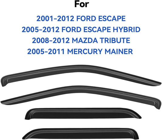 Window Visors Rain Guards Shield for 2001-2012 Ford Escape, Out-Channel Window Vent Wind Deflectors Visors Shades for 2005-2012 Ford Escape Hybrid, 2008-2012 Mazda Tribute, 2005-2011 Mercury Mainer