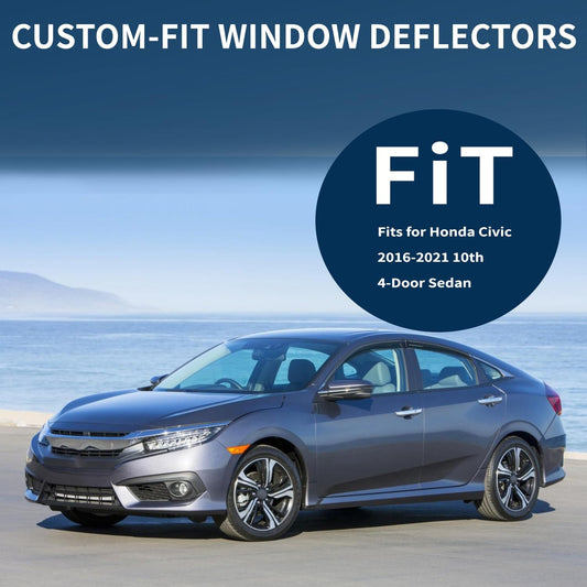 4PCS Rain Guards Window Visors Wind Deflector Fits for Honda Civic 2016-2021 10th 4-Door Sedan, 94682, Outside Mount Vent Shade Shield, 2016 2017 2018 2019 2020 2021