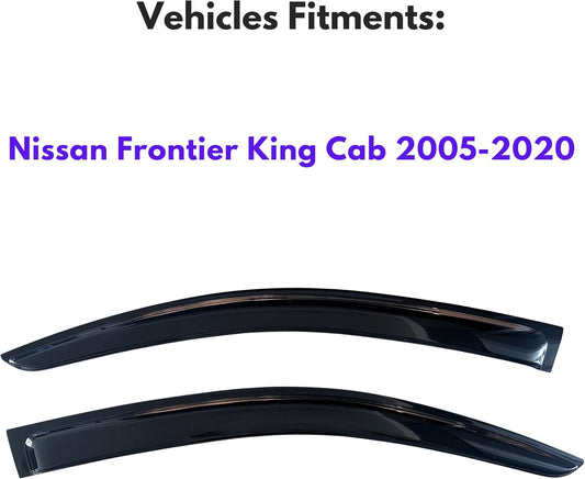 KPY Window Visor Compatible with Nissan Frontier King Cab 2005-2020, 2PC Rain Guard Side Window Vent Deflector Tape-On Style, 2006 2007 2008 2009 2010 2011 2012 2013 2014 2015 2016 2017 2018 2019 2020