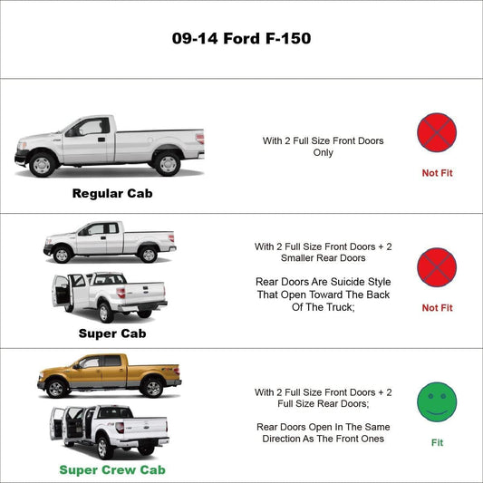 94155 Side Window Wind Visor Vent Deflector fit for Ford F-150 2009-2014 SuperCrew/Crew Cab, 4pcs Out-Channel Tape On Dark Smoke Nice Sun Rain Guards Set