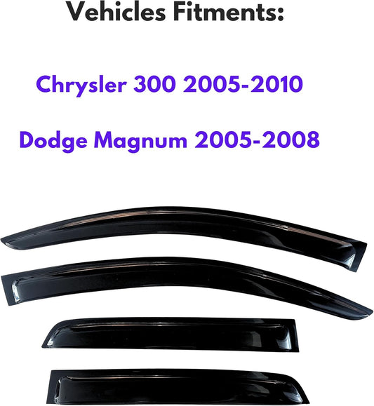 KPY Window Visor Compatible with Chrysler 300 2005-2010 & Dodge Magnum 2005-2008, 4PC Rain Guard Side Window Vent Deflectors Tape-On Style, 2005 2006 2007 2008 2009 2010