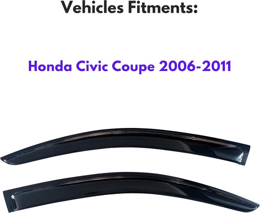 KPY Window Visor Compatible with Honda Civic Coupe 2006-2011, 2PC Rain Guard Side Window Vent Deflectors Tape-On Style, 2006 2007 2008 2009 2010 2011