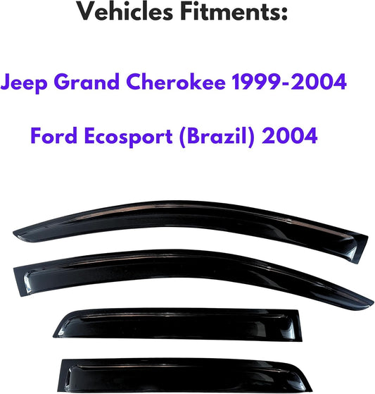 KPY Window Visors Compatible with Jeep Grand Cherokee 1999-2004 & Ford Ecosport (Brazil) 2004, 4PC Rain Guard Side Vent Deflectors Tape-On Style, 1999 2000 2001 2002 2003 2004