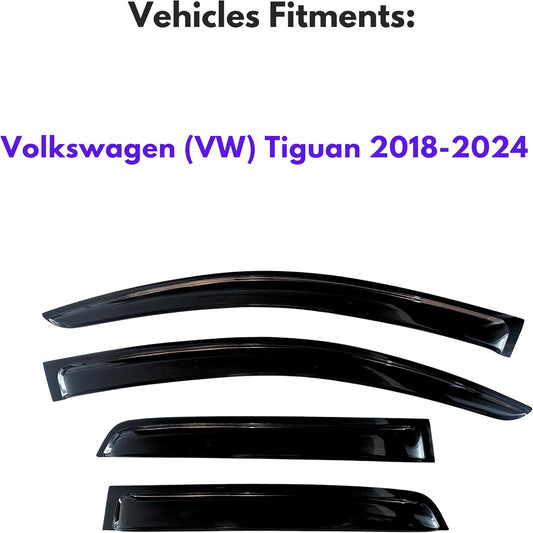 KPY Window Visor Compatible with Volkswagen (VW) Tiguan 2018-2024, 4PC Rain Guard Side Window Vent Deflectors Tape-On Style, 2018 2019 2020 2021 2022 2023 2024