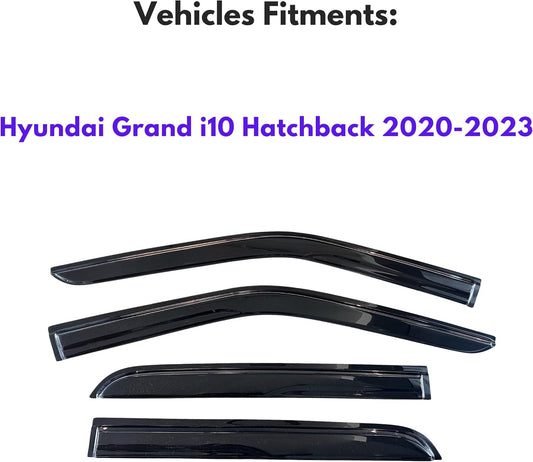 KPY Window Visor Compatible with Hyundai Grand i10 Hatchback 2020-2023, 4PC Rain Guard Side Window Vent Deflectors Tape-On Mugen Style, 2020 2021 2022 2023