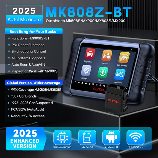 Autel Scanner MaxiCOM MK808S: 2025 Bidirectional Tool as MK808BT Pro MX808S M808Z, Work as MaxiCheck MX900 MK900BT, 28+ Service, Active Test, All System Diagnose, Injector Coding, FCA Autoauth OS 11