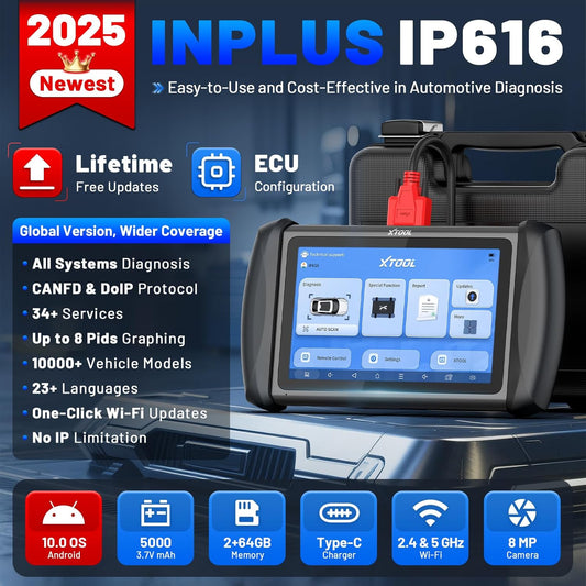 XTOOL InPlus IP616 V2.0 OBD2 Scanner Diagnostic Tool, Lifetime Update Scan Tool, 34+ Services, ECU Configuration, CAN FD & DoIP, All Systems Scanner for Car, Crank Sensor Relearn, ABS Bleed, Auto VIN