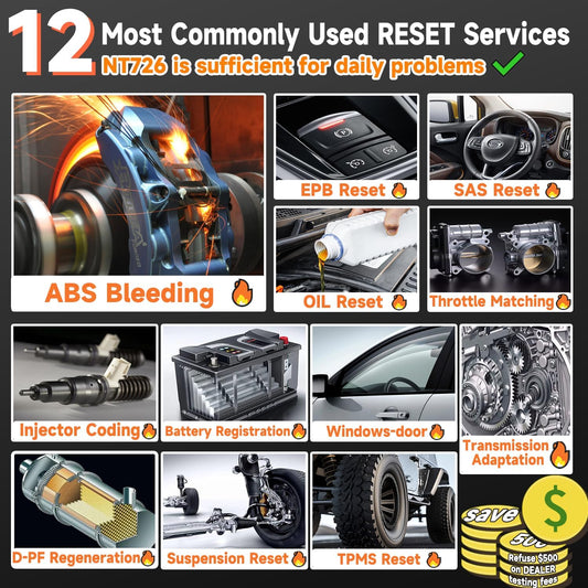 2025 FOXWELL NT726 Bidirectional Scan Tool, All System OBD2 Scanner Diagnostic Tool, Car Code Reader for All Models with 12 Resets, ABS Bleeding, Oil/EPB/SAS/D-PF/TPMS/Injector/Throttle, WI-FI Update