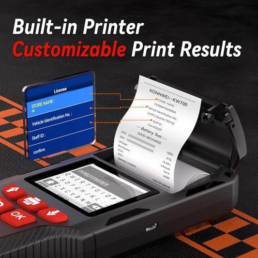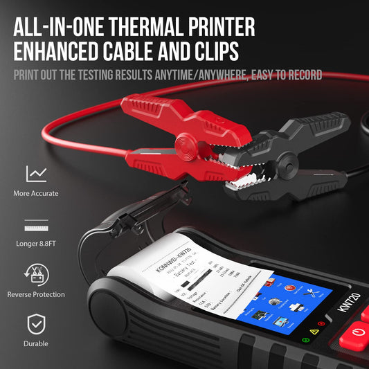 KONNWEI Car Battery Tester with Printer, Automotive 12V 24V Battery Load Tester Cranking and Charging Test 10-2000CCA Battery Analyzer Alternator Tester for Car Truck Motorcycle (Paper Included)