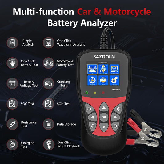BT900 Car-Battery-Tester 6V 8V 12V, Automotive 100-2000CCA Battery-Load-Tester Analyzer, Digital Auto Battery Analyzer for Car Truck Marine Motorcycle SUV Boat,Black