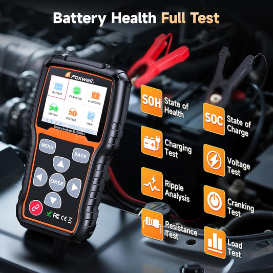 FOXWELL BT705 Plus Car Battery Tester 12V 24V Automotive, 100-2000CCA Battery Load Tester Digital Battery Analyzer Charging System Alternator Tester Cranking Checker for Car Heavy Duty Truck Marine