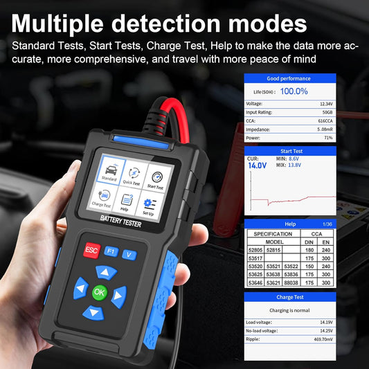 BT60 Pro Acclope Car Battery Tester with Cloud Printing 100-3000 CCA 6V 12V 24V AGM Lithium Gel Battery Checker Automotive Alternator Digital Analyzer Charging Cranking System Vehicles Truck Home-use