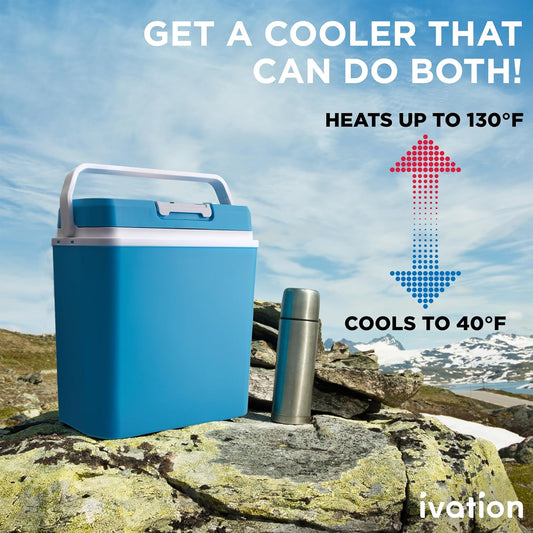 Ivation Electric Cooler & Warmer with Handle | 24 L Portable Thermoelectric Fridge for Vehicles & Trucks| 110V AC Home Power Cord & 12V Car Adapter for Camping, Travel & Picnics