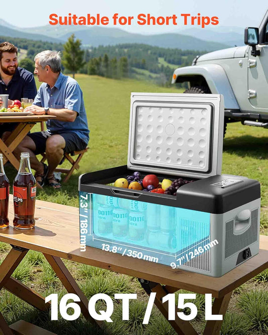 VEVOR 12 Volt Refrigerator 16 Qt, Gre,Portable Mini Car Fridge with -4℉-68℉ Cooling Range & App Control 12/24V DC & 110-240V AC Electric Compressor Cooler for Truck Vehicle RV Boat Outdoor & Home Use