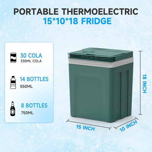 SHAREWIN Electric Cooler & Warmer with Handle 26.5 Quart/25L Portable Thermoelectric Fridge for Vehicles & Trucks with 110V AC & 12V DC, 12V Car Cooler for Camping, Travel Army Green