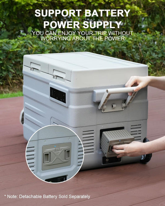 ELECAENTA 12 Volt Refrigerator, 43qt Dual Zone Car Fridge, Portable Freezer -4℉~68℉, Support DC/AC/Solar (Detachable Battery Optional), Electric Cooler for Camping Travel Fishing Road Trips