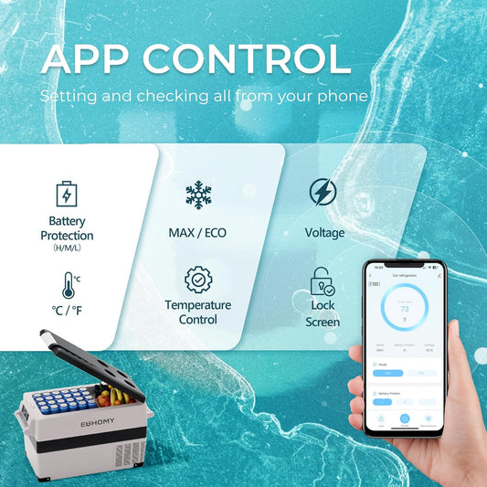 EUHOMY 12 Volt Refrigerator, 59QT(55L) Electric Cooler, 12V Fridge APP Control, 12V Cooler -4℉~68℉, Portable Freezer 12/24V DC 110-240V AC for Camping, Travel, Truck, Home