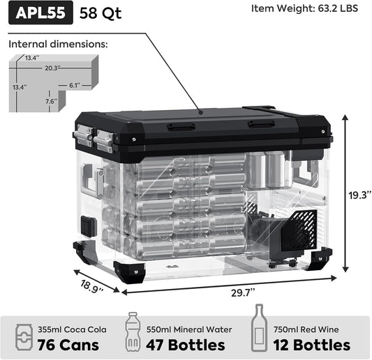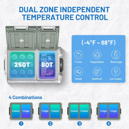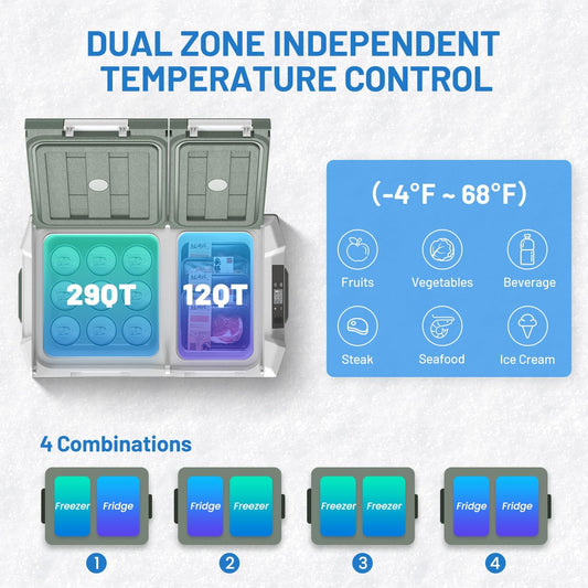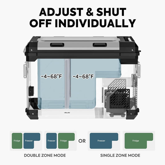 Setpower DT55 Portable Refrigerator with APP Control, 59QT(55L) Dual Zone Fridge Freezer, Electric Coolers for Vehicles AC/DC, Car Refrigerator 12V Portable Fridge