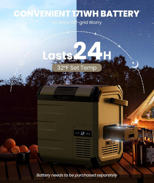 EENOUR D18 19Qt/18L 12V Car Refrigerator with Detachable Battery – Solar/AC/DC Powered Car Freezer, -4℉~50℉, Ultra-Quiet 12/24V Car Fridge for Camping, Road Trips, RV, Truck-Black