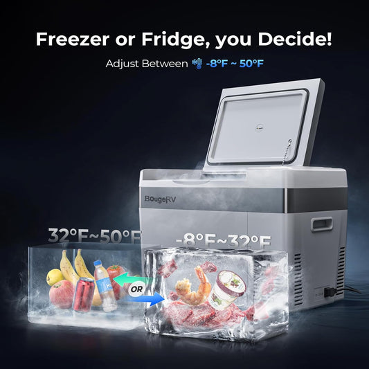 BougeRV 12 Volt Refrigerator 12V Car Fridge 30 Quart Portable Freezer Compressor Cooler -8℉~50℉ Compressor Freezer, 12/24V DC 110~240 Volt AC, for Truck RV SUV