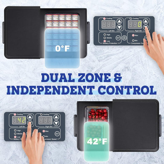 Setpower DT35 Electric Cooler Car Refrigerator with APP Control, 37QT(35L) Dual Zone Fridge Freezer, 12 Volt Portable Refrigerator Plug in Cooler for Vehicle,SUV,Truck