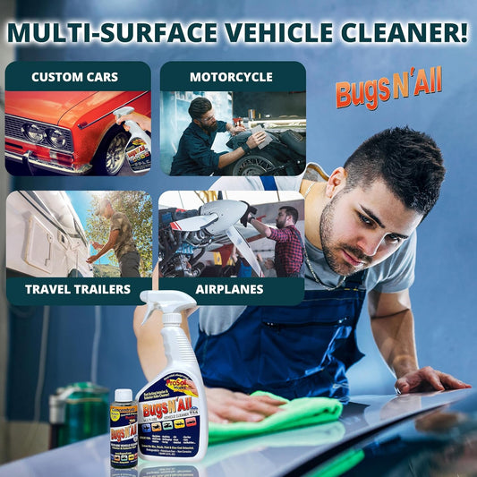 Bugs N’ All Multipurpose Car Cleaner & Degreaser - Bug & Tar Remover Concentrate 4 oz - Exterior Cleaner Safe for Car Paint, Metal, Chrome, Aluminum, Windows & Mirrors - w/Free 32 oz Spray Bottle