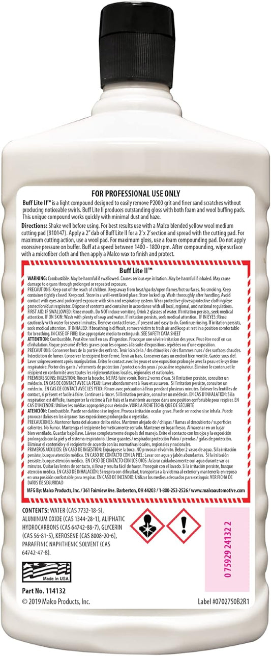 Malco Buff Lite II Finishing Crème – One-Step Professional Cutting, Polishing and Finishing Compound/Removes Brush Marks, Car Wash Scratches, and Snow Brush Scratches / 32 Oz. (114132)