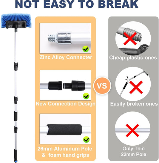 Buyplus 12FT Car Wash Brush with Long Handle, 12-Inch Soft Bristle, with Aluminium Telescoping Pole, for Cleaning Car, SUV, RV, Boats, House Siding, Floors, Solar Panels, and More