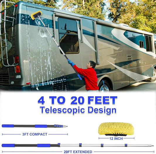 Buyplus Car Wash Brush with 20FT Long Handle, Car Brushes for Washing 12-Inch Soft Bristles with Aluminium Telescoping Pole for Scratch-Free Cleaning RV, House Siding, Floors, Solar Panels,Blue