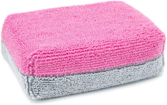 Autofiber Thick [Saver Applicator Terry] Ceramic Coating Applicator Sponge | 12 Pack | with Plastic Barrier to Reduce Product Waste. (Pink/Gray)