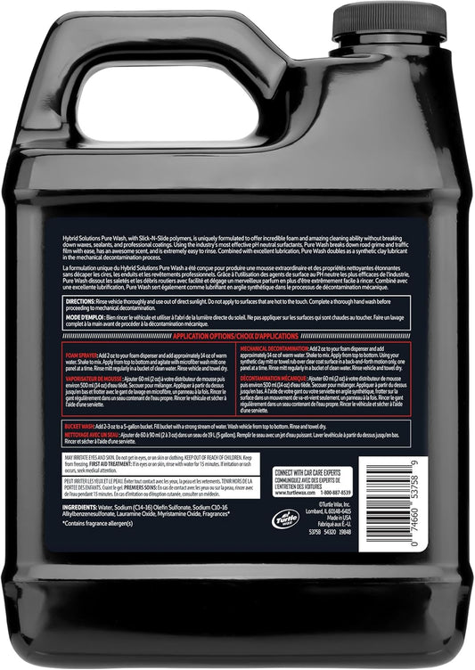 Turtle Wax 54320 Hybrid Solutions Slick-N-Slide Pure Wash, pH Neutral, Extreme Foaming Car Wash Soap, Hand Wash or Foam Cannon Application, Clay Bar Lubricant, Spot Free Clean, 64 oz. (Pack of 1)