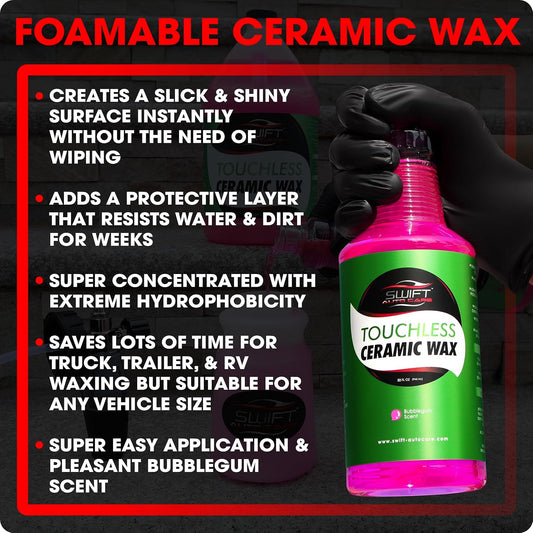 Swift Touchless Ceramic Foamable Wax (32 Oz) – Spray On/Rinse Off For High-Gloss, Hydrophobic Protective Layer | For Foam Cannon & Foam Pump Sprayer After Car Wash | Wax Cars, Trucks, RV’s & More!