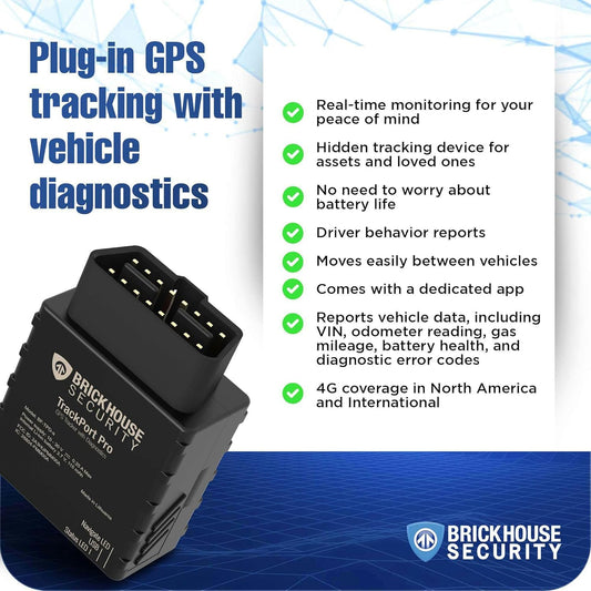 Brickhouse Security TrackPort Pro - Diagnostic GPS Tracker for Vehicles, Car Location, Speed, Battery Health, Mileage, Vehicle Diagnostic Data Report - Plugs into OBD Port - Subscription Required