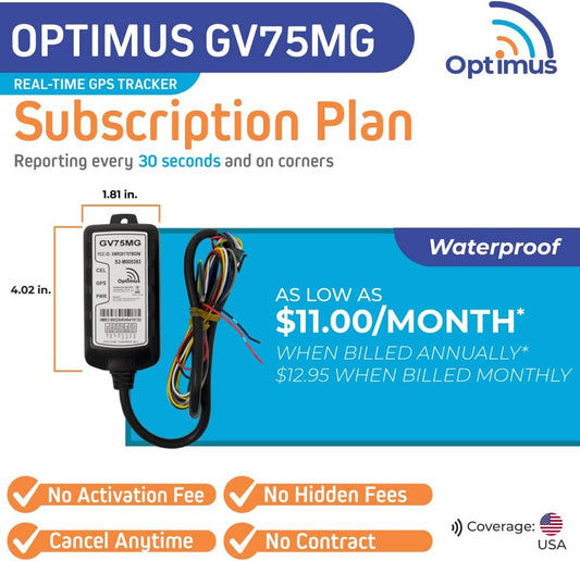 Optimus GV75MG Waterproof Wired GPS Tracker for Motorcycles, Boats, Machinery, Assets