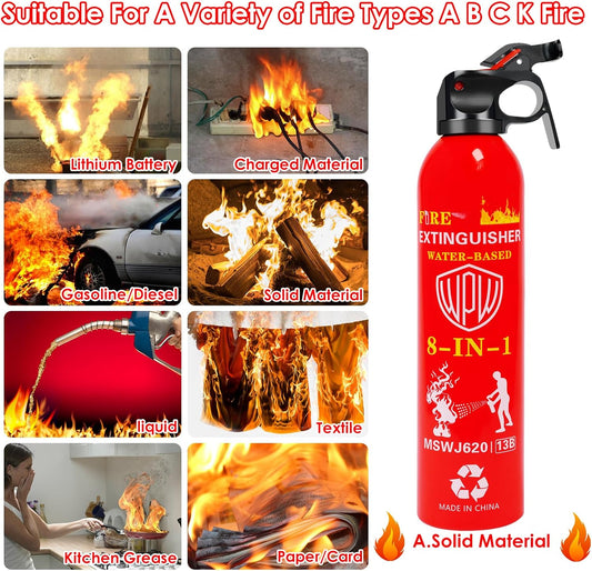 WPW 620ml Large Upgraded 8-in-1 Fire Extinguisher for Home with Wall Mount Portable Fire Extinguisher For Vehicle Car Boat House Kitchen Emergency Supplies, Water-Based Solution For A, B, C, K Fire