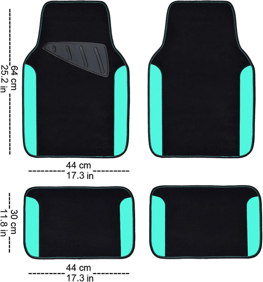 CAR PASS Waterproof Universal Fit Car Floor Mats, Teal Car Mats Fit for SUV,Vans,sedans, Trucks,Set of 4pcs Car Carpet for Women(Black with Mint)