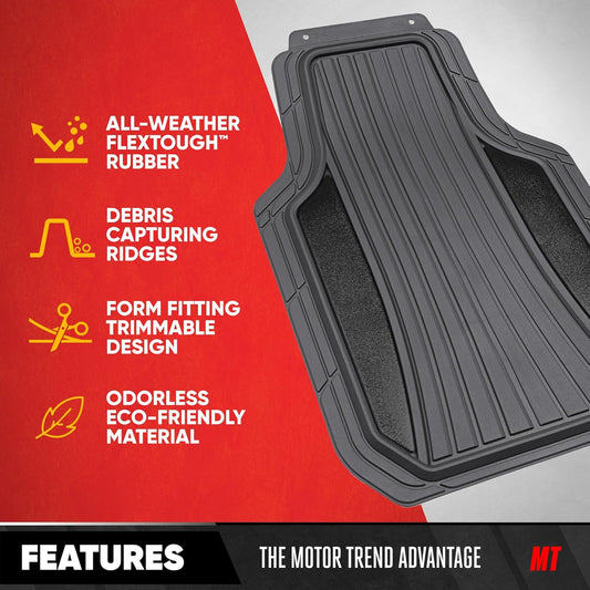 Motor Trend Rubber Car Floor Mats - Durable, All Weather Protection with Non-Slip Backing, Two Tone Accent - For Front and Rear, Black & Gloss Black