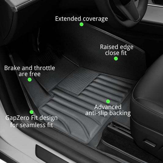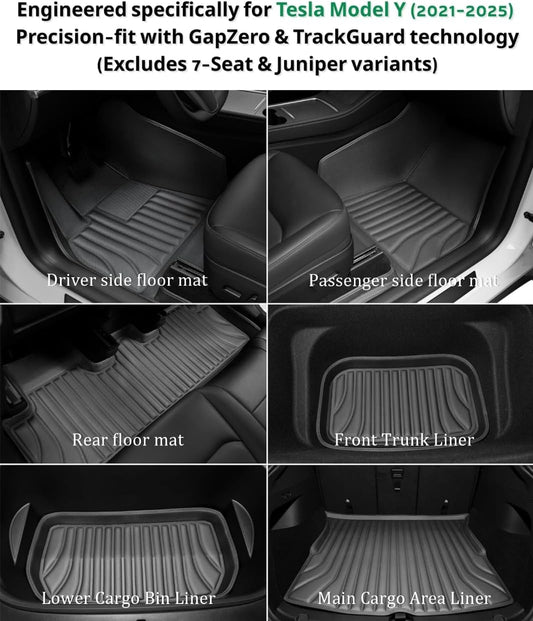 Floor Mats for Tesla Model Y(2021-2025) Custom Fit All Weather Cargo Liner Cargo Trunk,Full 360° Cabin Protection,GapZero Fit with TrackGuard Rail Protection (Does NOT fit 7-Seat & Juniper)