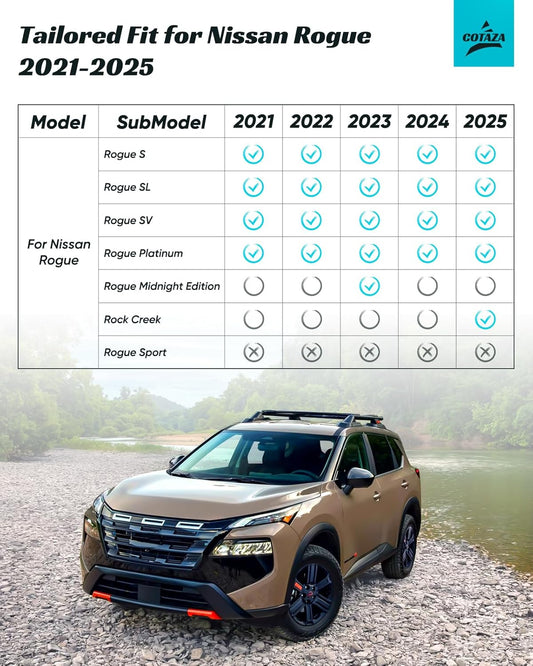 Floor Mats Full Set for Nissan Rogue 2021-2025 Accessories, All Weather Floor Mats Cargo Liner for Back of SUV, Rubber Mats for Car Floor, Custom Fit laser Tech Mat Heavy Duty Trunk Liner Black
