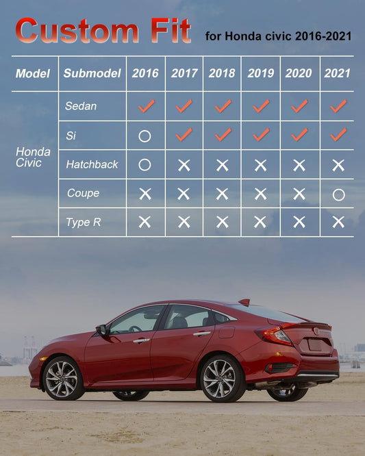 Floor Mats & Cargo Liner Only Fit for 2016-2021 Civic Sedan / 2017-2021 Civic Si - All Weather Protection Floor Liners with Trunk Mat - 1st 2nd Row and Cargo Car Mats Full Set Civic Accessories Black