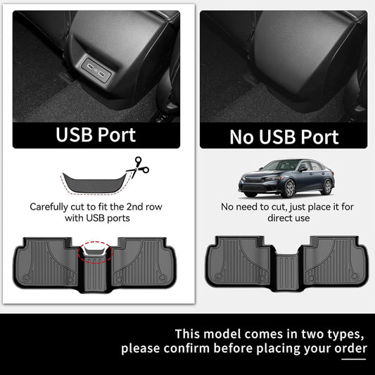 Floor Mats for Honda Civic 2022-2025 (Fits Rear Seats with or Without USB Ports) | for Acura Integra 2023-2025, All Weather Floor Liners Civic Accessories, 1st & 2nd Row, Black