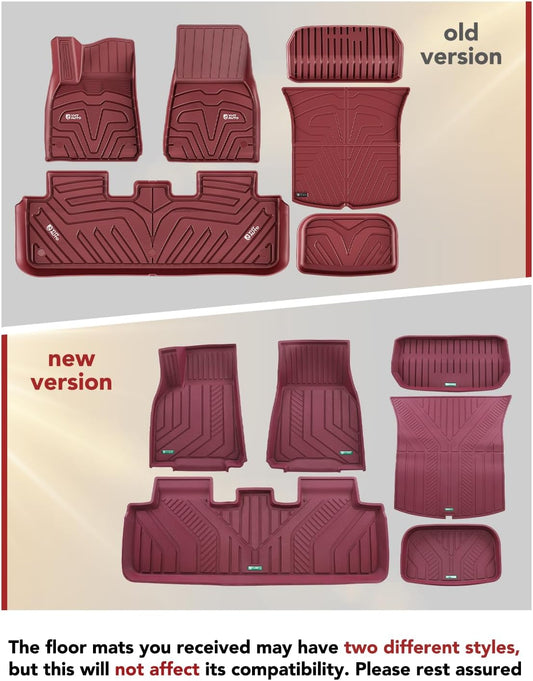 YHTAUTO Custom Fit Red Car Floor Mats for Tesla Model Y 2025-2020 5 Seater, All Weather TPE Car Mats Carpet, Front Rear Trunk Cargo Storage Liner Mats, Anti-Slip Waterproof, Set of 6