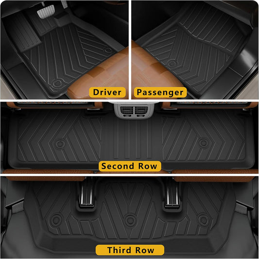 YHTAUTO Custom Fit Car Floor Mats for Tesla Model Y 2025-2020 (5-Seat), Not for Juniper, 1st & 2nd Row All Weather TPE Car Mats Carpet Liners, Anti-Slip Waterproof, Automatic Front Rear Mats for Car