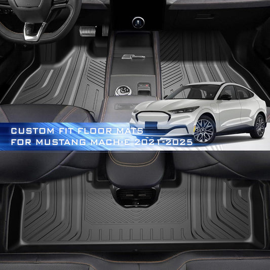 Car Floor Mats for Ford Mustang Mach-E 2021-2024 2025 Accessories,TPE All Weather Protection Floor Mats,Custom Fit 1st&2nd Row Car Floor Liners Set,Heavy Duty Accessories,Black