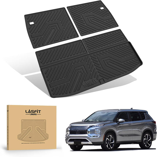 LASFIT Backrest & Cargo Mat for Mitsubishi Outlander 2022-2025 (Not Fit PHEV or Sport Models), Custom Fit All-Weather TPE Rubber Trunk Mat for Mitsubishi Accessories, Waterproof, Easy to Clean, Black