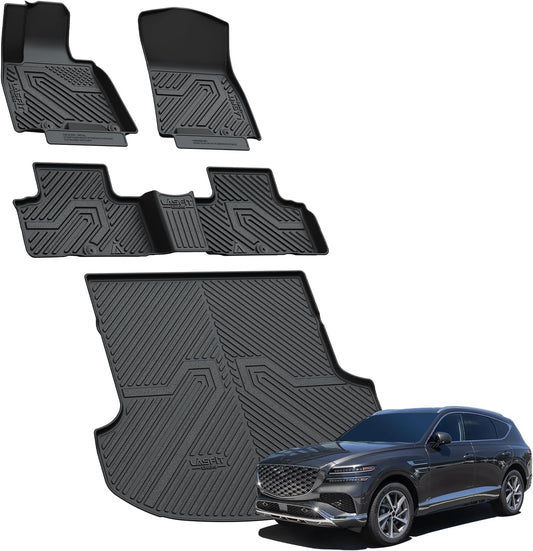 LASFIT Floor Mats & Cargo Mat for Genesis GV80 2021-2024(Fit 5 Seats), TPE All Weather Protection Custom Fit 1st & 2nd Row Rubber Floor Liners for GV80 Automotive Accessories, Black, Easy to Clean