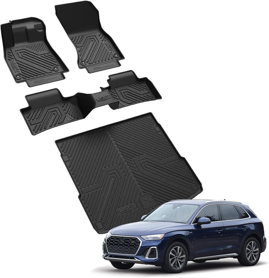 LASFIT Floor Mats & Cargo Mat for Audi Q5/SQ5 2018-2025 (Include Sportback 2021-2025), TPE All Weather Protection Custom Fit 1st & 2nd Row Rubber Floor Liners for Audi Automotive Accessories, Black