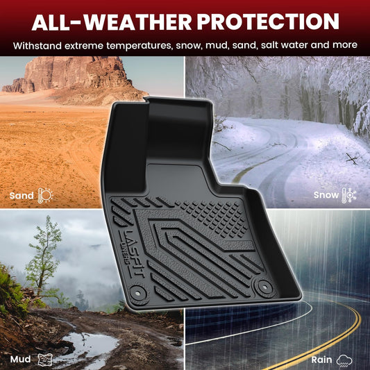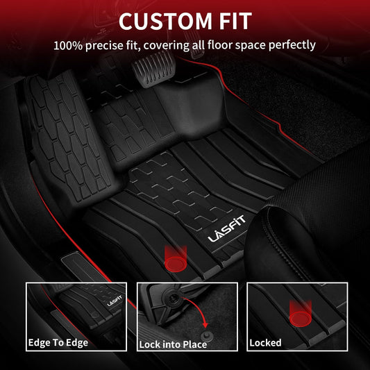 LASFIT Floor Mats for Cadillac XT4 2019-2025, All Weather TPE Custom Fit Automotive Floor Mats for Cars, 1st and 2nd Row Car Floor Mats Full Set for Cadillac XT4 Accessories, 3 PCS, Black