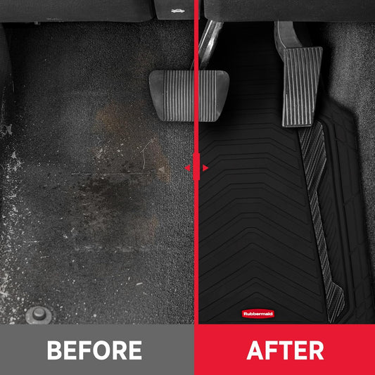 Rubbermaid Car Floor Mat, Heavy Duty All-Weather Car Mats Full Set with Dual-Tone Black Aluminum Inserts – Universal Fit, Anti-Slip Backing, Trim-to-Fit for Most SUV, Sedan, Van