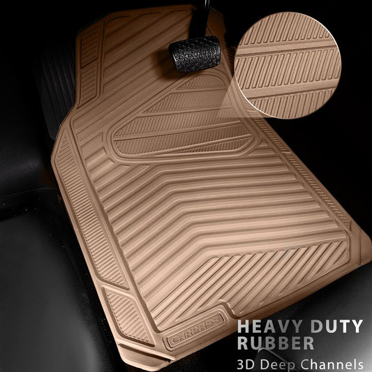 CAR PASS Rubber Car Mats,Car Floor Mats All Weather Car Mat Full Set 3 Piece Tan Waterproof Automotive Floor Mat Trim to Fit for Cars Sedan SUVs Small Trucks Heavy Duty Anti-Slip Easy Clean, All Beige